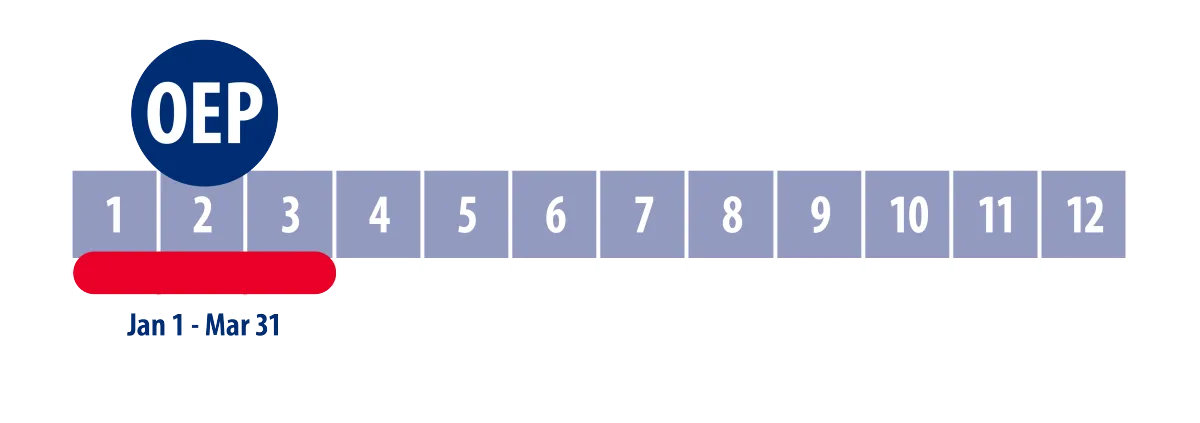 ⦁ If you missed enrolling in Medicare Part A and/or Part B during your Initial Enrollment Period (IEP) and don’t qualify for a Special Enrollment Period (SEP), you can sign up between January 1 and March 31.